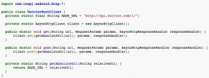官方推薦的使用方法,使用一個(gè)靜態(tài)的請(qǐng)求對(duì)象,我們來(lái)看看官方例舉的一個(gè)訪問(wèn)Twitter的API的例子: