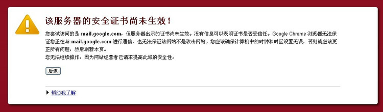 當(dāng)看到上面的技術(shù)細(xì)節(jié)的有關(guān)描述時(shí),才發(fā)現(xiàn)是我的系統(tǒng)時(shí)間有問題,不知道什么時(shí)候手癢,被我設(shè)置成比當(dāng)前時(shí)間要早的時(shí)間了。